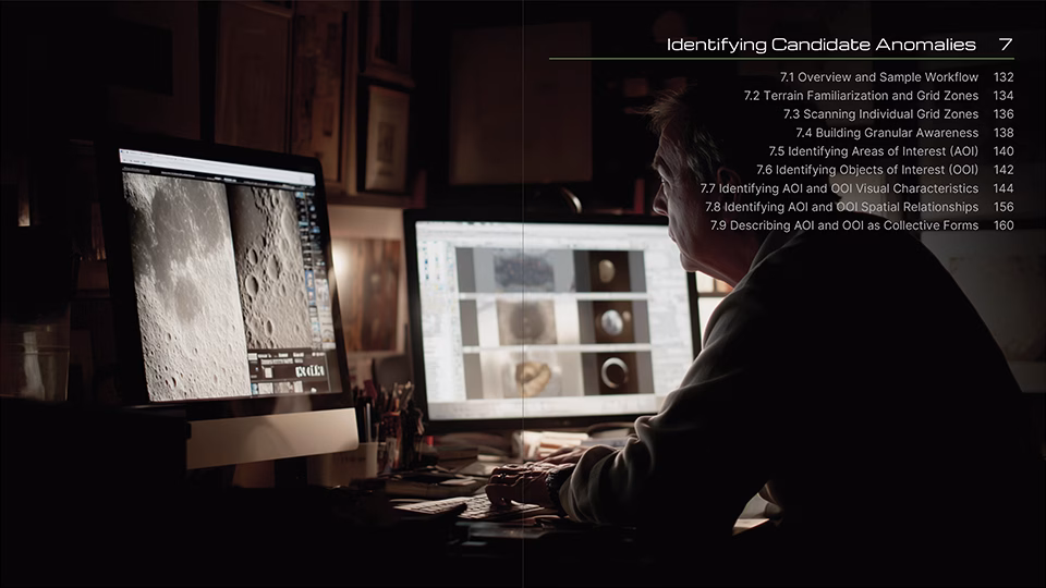 It defines a structured, science-based framework for examining lunar mission photography for evidence of extraterrestrial artifacts. It neither defends existing assumptions nor advances pre-established conspiracy claims, focusing instead on disciplined visual analysis, shared analytic language, and science-backed methods designed to improve perception and reduce pareidolia.